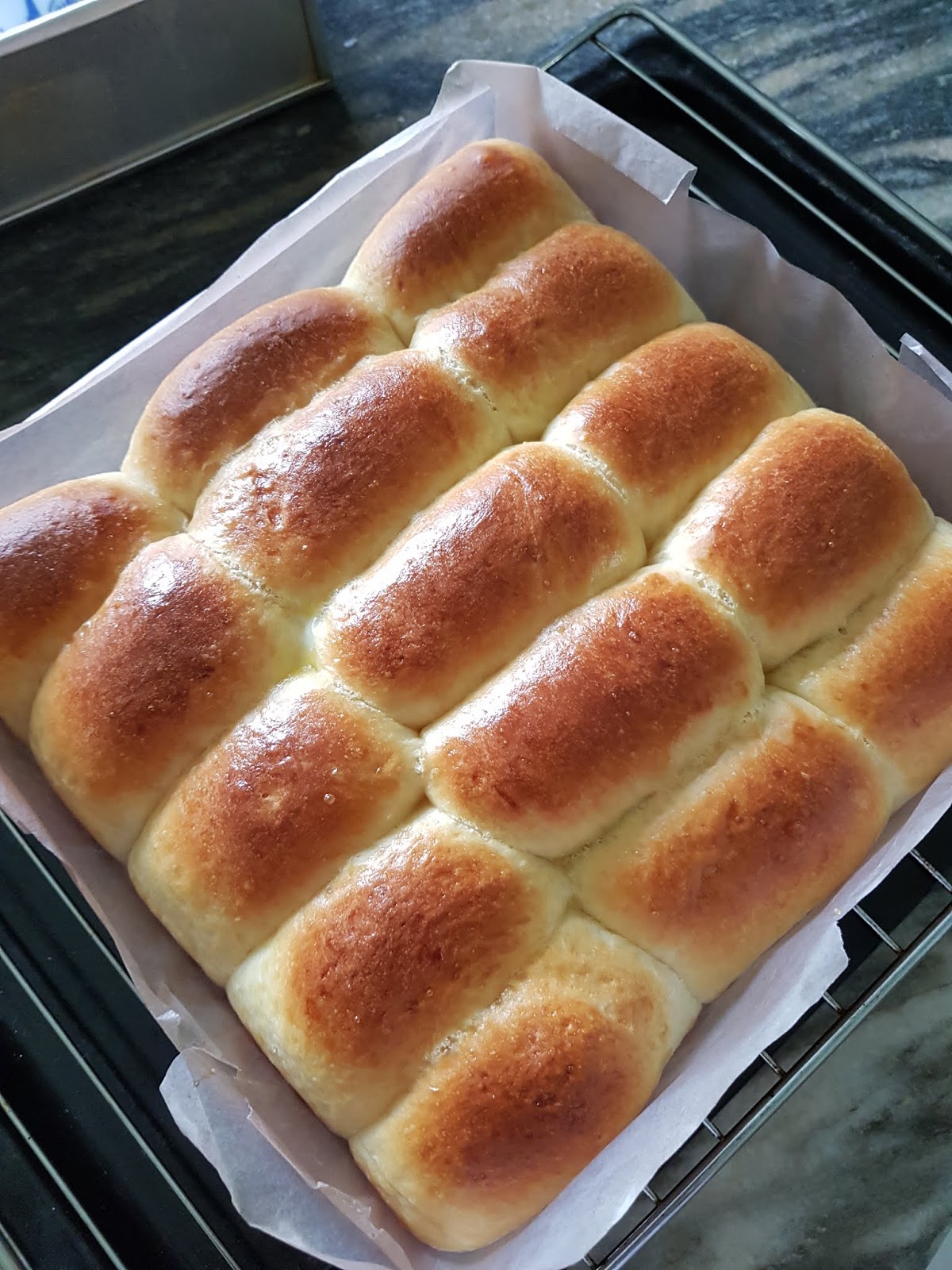I love baking the dinner rolls. They are slightly sweet, very soft and very fluffy. And they can stay soft for 3 to 4 days. We usually eat them whole on their own. However, sometimes we slice them and spread butter, jam, egg custard (kaya) or whipped cream between the two halves. Usually, I will make a lot of rolls at one go to last our family at least 3 days.